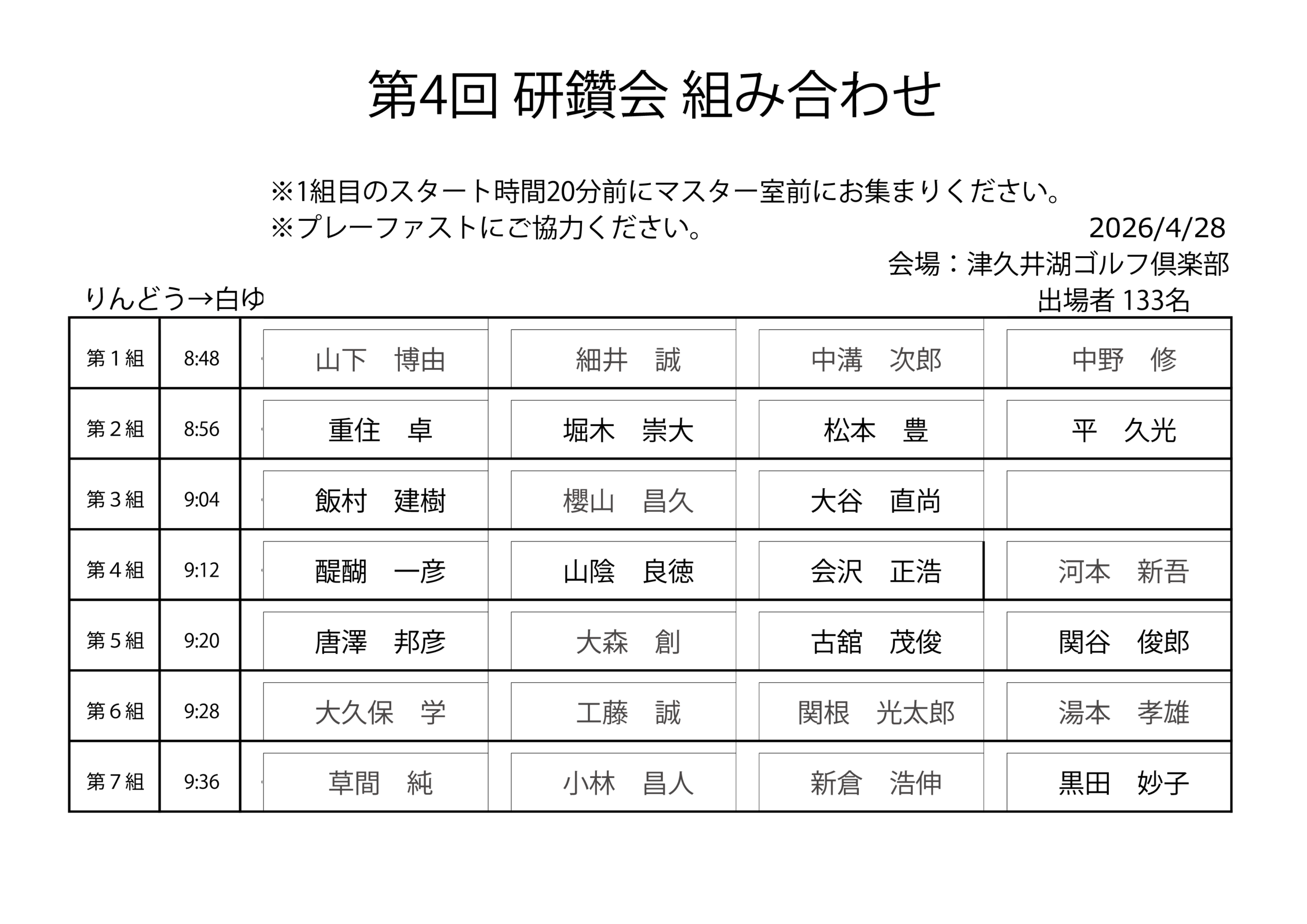 第4回「研鑚会組合せ及び競技規則」のご案内